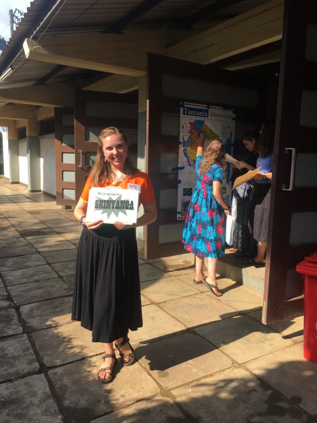 One by one, we were called up to the front of the room, the hat was placed on our heads and a voice (that we think was probably Jerry, the country director) played over the speakers telling us what region we would be in. We then would put up a picture of ourselves on a big map, get information on our site, and move to our tables with other people in our super region. By the end, I learned that I am off to the Shinyanga region!
