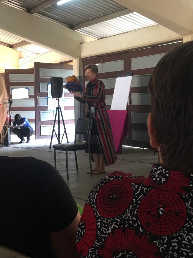 In walks Kristine, our PCVL, and she has a wand and holding a hat covered in kitenge, a local fabric. A hat that was very reminiscent to that of the sorting hat in Harry Potter. This is not a drill. I am being sorted by the sorting hat. Oh my goodness.