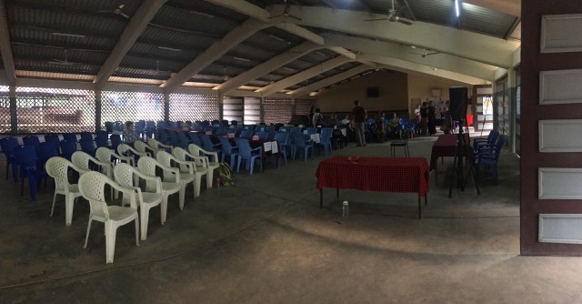And so, we walked into the hall where we have class every day that normally looks like this: